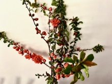 Coral colored florets on woody stems with small deep green leaves. Splice the stems for better water absorption. Certified Organic.